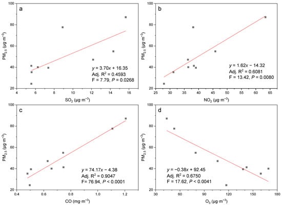 3.2. Correlation between PM2.5 Concentration and Other Pollutants