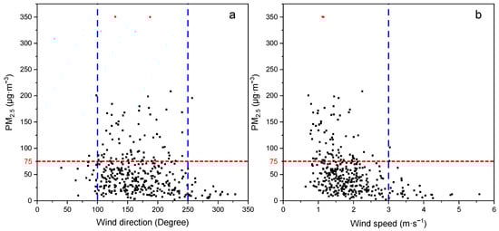 Effects of (a) wind direction and (b) wind speed on PM2.5 concentration (n = 365).