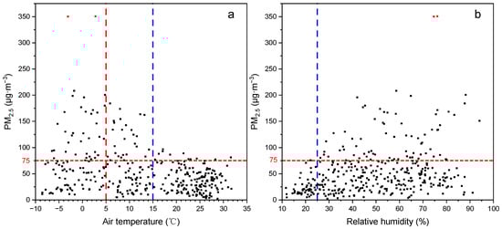 Effects of (a) air temperature and (b) relative humidity on PM2.5 concentration (n = 365).