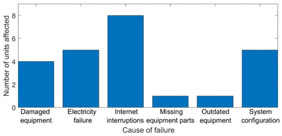 Almost 50% of installed SCINDA GISTMs in Africa are non-operational. This state of affairs is not suitable for space weather research in Africa. The reasons for this are damage, intermittent electricity supply, and poor internet connectivity, thus prohibiting data transfer to the central server in Boston College; missing equipment parts; equipment reaching the end of its useful operational lifetime; and system configuration problems (see Figure 2). This means mitigating space weather effects is not possible in large swathes of Africa due to the infrastructure gaps and the non-operational status of most receivers. Consequently, space weather advisories to various sectors would only be possible in certain parts of Africa but not in others. This is particularly bad for the aviation industry since the International Civil Aviation Organization (ICAO) now requires all airports to integrate space weather information in their aeronautical information services [16]. This state of the GISTMs in Africa hampers space weather research in the continent and jeopardizes networking and collaborations. In addition, it highlights the lack of goodwill by the hosts to avail funds to replace damaged equipment or even add more to the network to enable research work to continue.