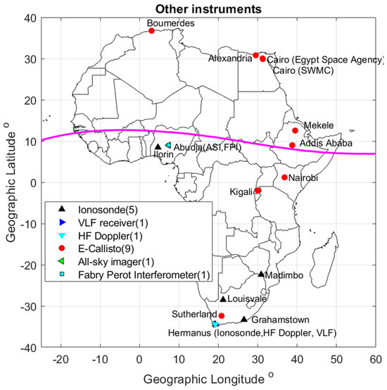 Several other ground-based facilities that can be used for space weather monitoring have been deployed in Africa. Figure 5 depicts the distribution of most of the other space weather equipment in Africa.