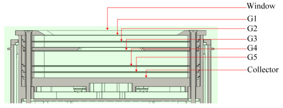 - Marrese, C.M.; Majumdar, N.; Haas, J.M.; Williams, G.; Ring, L.B.; Gallimore, A.D. Development of a Single-orifice Retarding Potential Analyzer for Hall Thruster Plume Characterization. In Proceedings of the 25th International Electric Propulsion Conference, Cleveland, OH, USA, 24–28 August 1997; Volume 24, pp. 397–404. [Google Scholar]
