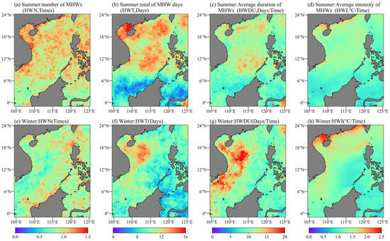 3. Characteristics of MHWs in the SCS during Summer and Winter Half-Year