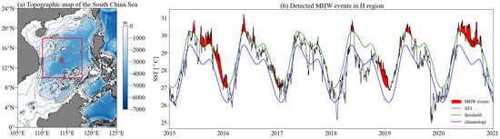 - Wang, Y.; Zhang, C.; Tian, S.; Chen, Q.; Li, S.; Zeng, J.; Wei, Z.; Xie, S. Seasonal cycle of marine heatwaves in the northern South China Sea. Clim. Dyn. 2023, 61, 3367–3377. [Google Scholar] [CrossRef]