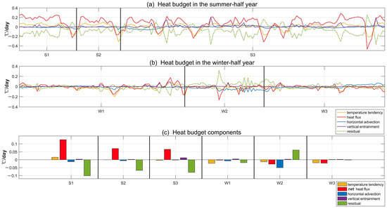 4.2. Diagnostic Analysis Based on the Heat Bugdet Equation of the Seawater Upper Ocean