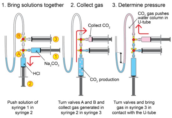 - Alyea, H.N. Syringe Gas Generators. J. Chem. Educ. 1992, 69, 65. [Google Scholar] [CrossRef]