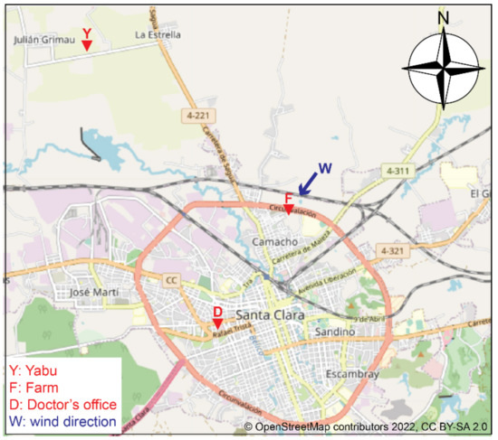 - Alejo, D.; Morales, M.C.; de la Torre, J.B.; Grau, R.; Bencs, L.; Van Grieken, R.; Van Espen, P.; Sosa, D.; Nuñez, V. Seasonal Trends of Atmospheric Nitrogen Dioxide and Sulfur Dioxide over North Santa Clara, Cuba. Environ. Monit. Assess. 2013, 185, 6023–6033. [Google Scholar] [CrossRef]