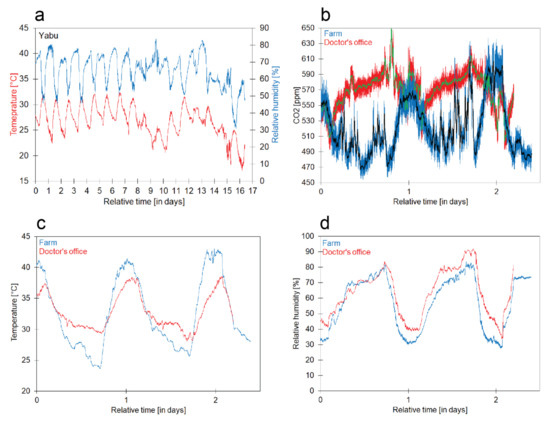 | F | Farm | 22°42′63.74″ N, 79°96′38.64″ W | 4–6 March 2020 | 7 s | T (°C), RH (%) | 2 |