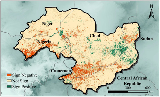 Currently, although human activity has been shown to be one of the causes of global vegetation loss, this is not the case at the CLCB [25]. Since the United Nations Sustainable Development Summit jointly adopted the “2030 Agenda for Sustainable Development,” a series of restoration and development projects have been implemented in the CLCB, such as the poverty alleviation project (Rehabilitation and Resilience Building Programme for Socio-Ecological Systems in the Lake Chad Basin, PRESIBALT) formulated by the Lake Chad Basin Committee and the Economic Recovery Project (Lake Chad Inclusive Economic and Social Recovery Project, RESLAC), which created conditions for continuous optimization and an increase in NPP [26,27]. However, not all projects are conducive to restoring vegetation productivity. Several studies have reported that many problems remain in the CLCB, such as water resource conflicts and population displacement due to increased resource pressure and unequal environments, which require specific planning by the African Union and international agencies [28]. Therefore, in addition to climate change, human activities can also be considered as key factors affecting the spatiotemporal distribution and trend changes of NPP.