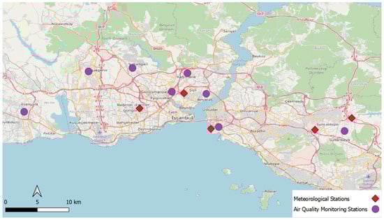 Location of meteorological and air quality monitoring stations.