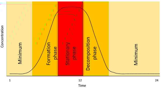 Theoretical daily ozone evolution cycle.