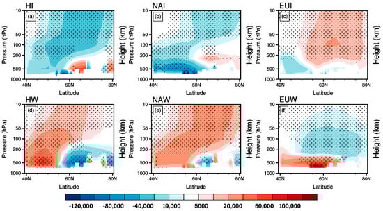- Polvani, L.M.; Waugh, D.W. Upward wave activity flux as a precursor to extreme stratospheric events and subsequent anomalous surface weather regimes. J. Clim. 2004, 17, 3548–3554. [Google Scholar] [CrossRef]