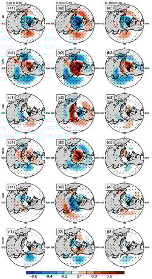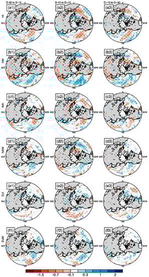 3.3. Simulation of Tropospheric Circulation Patterns for the Six Regimes at the Stratosphere