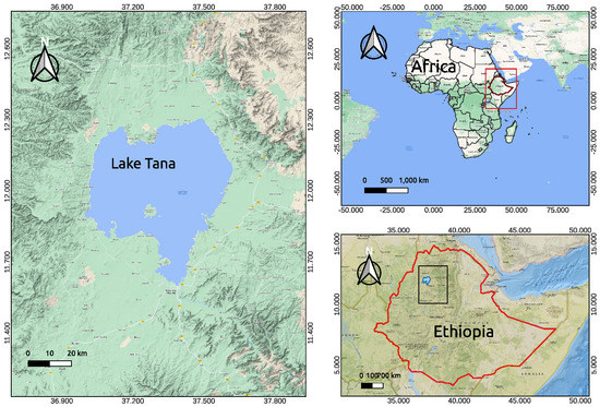- Goshu, G.; Koelmans, A.A. and de Klein, J.J.M. Water Quality of Lake Tana Basin, Upper Blue Nile, Ethiopia. A Review of Available Data. In Social and Ecological System Dynamics: Characteristics, Trends, and Integration in the Lake Tana Basin, Ethiopia; Stave, K., Goshu, G., Aynalem, S., Eds.; Springer: Berlin, Germany, 2017; pp. 127–141. [Google Scholar]