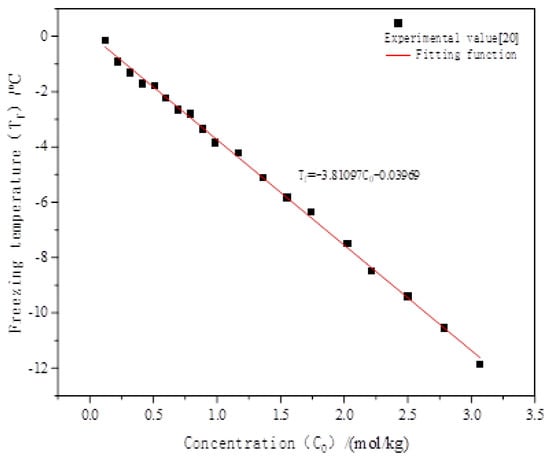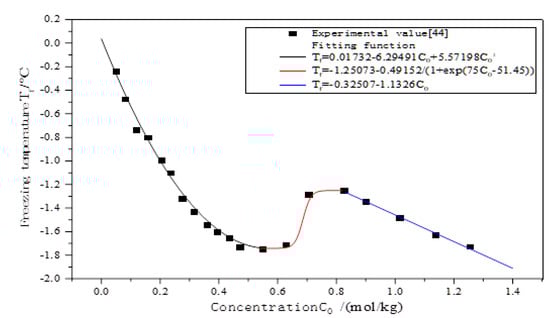 The relationship between the freezing temperature of Na2SO4 and the concentration of Na2SO4 is based on the experimental results of Reference [44]. As shown in Figure 7, the freezing temperature of Na2SO4 initially decreases, then increases and finally decreases with the increase in Na2SO4 concentration.