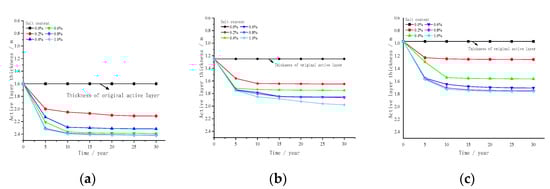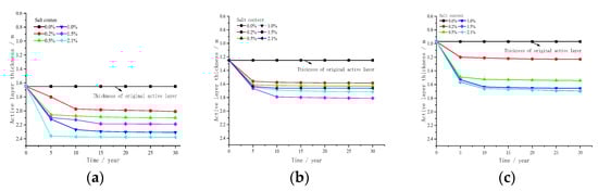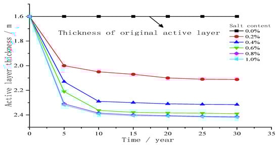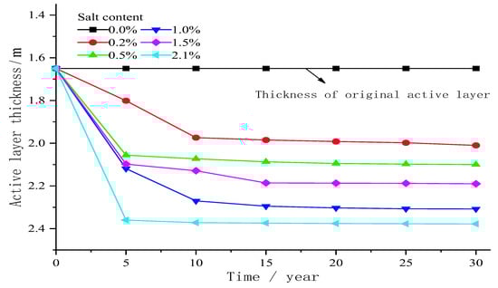 Influence of different sodium chloride contents on the active layer thickness in the freeze–thaw season of 30 years.