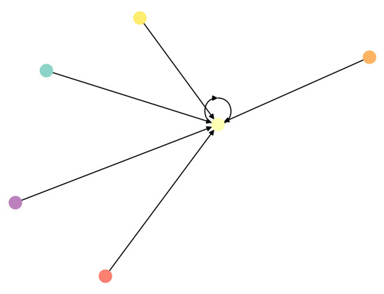 Figure 3 depicts the graph approach using five nearby stations, represented as circles as an example. From the figure, nearby stations send information to the reference study station, located in the middle of the image at the endpoint of the arrow’s heads, also sending data to itself.