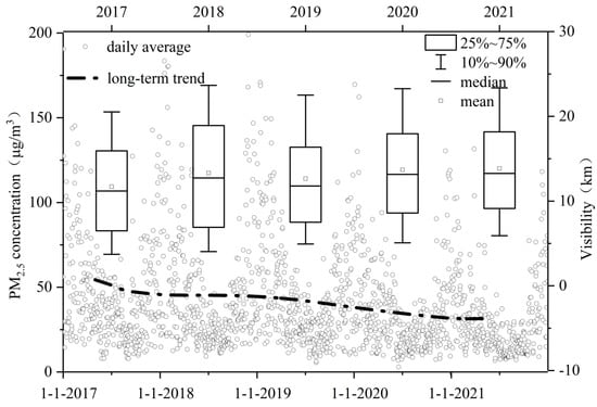 - Deng, X.; Tie, X.; Wu, D.; Zhou, X.; Bi, X.; Tan, H.; Li, F.; Jiang, C. Long-term trend of visibility and its characterizations in the Pearl River Delta (PRD) region, China. Atmos. Environ. 2008, 42, 1424–1435. [Google Scholar] [CrossRef]