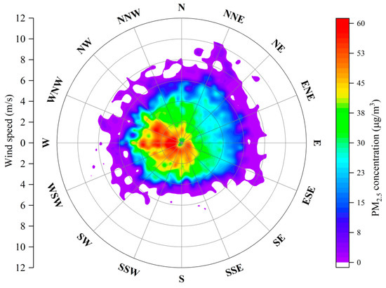 3.2.2. The Relationship between PM2.5 Concentration and Wind Direction and Wind Speed