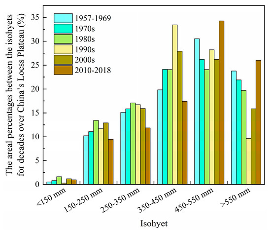 The areal percentages between the isohyets for decades over China’s Loess Plateau.