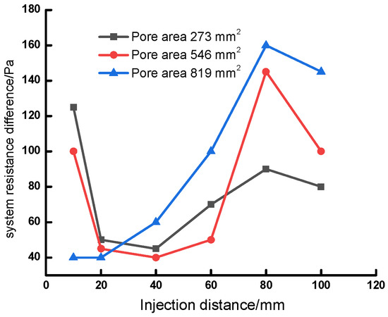 Figure 10 shows the change of system resistance at different nozzle areas and different jet distances at the pulse pressure of 0.4 MPa.