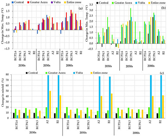 - Bessah, E.; Raji, A.O.; Taiwo, O.J.; Agodzo, S.K.; Ololade, O.O. Variable resolution modeling of near future mean temperature changes in the dry sub-humid region of Ghana. Model. Earth Syst. Environ. 2018, 4, 919–933. [Google Scholar] [CrossRef]