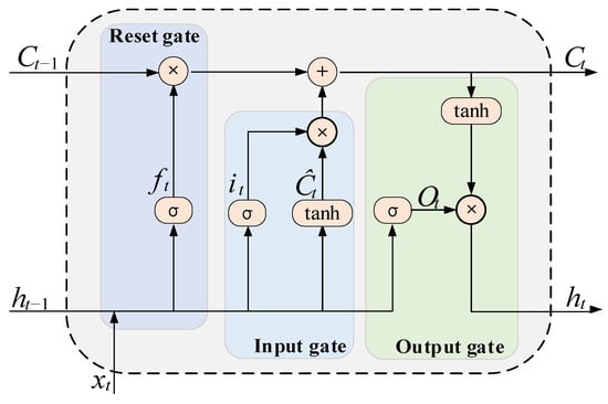 LSTM is a gated deep learning network for time-series prediction. In the decoder, it was used to extract the time dependence between variables. Its structure is shown in Figure 2.