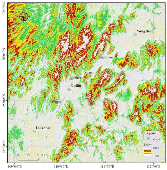 Guilin is a famous tourist city, attaching great importance to the protection of the ecological environment, with magnificent mountains and clear rivers. However, the air quality index is the worst among the 14 cities in Guangxi Province, and haze events often occur in winter [55]. This abnormal phenomenon is due to the special geographical location. As shown in Figure 4, the area northeast of Guilin is connected to Yongzhou through Lingchuan, Xing’an and Quanzhou, and the area southwest is connected to Liuzhou through Yongfu. In addition, Guilin is a typical karst basin, surrounded by Tianping, Haiyang, Jiaqiao and other mountains, which readily forms atmospheric turbulence and is not conducive to the diffusion of atmospheric pollutants. Therefore, the pollutants from Yongzhou and Liuzhou often accumulate in Guilin, resulting in abnormal haze events in Guilin, so it is necessary to make a reliable prediction of air pollutants in Guilin.