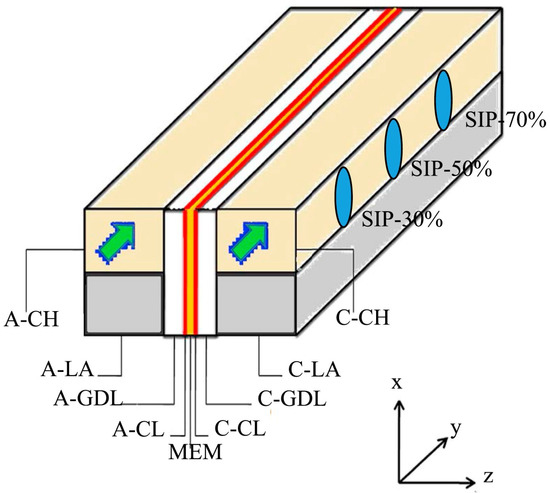 - Yin, Y.; Wang, X.; Shangguan, X.; Zhang, J.; Qin, Y. Numerical investigation on the characteristics of mass transport and performance of PEMFC with baffle plates installed in the flow channel. Int. J. Hydrogen Energy 2018, 43, 8048–8062. [Google Scholar] [CrossRef]