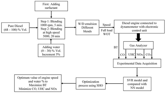 - The SHO approach provides the optimum value with better exploration capability. The addition of 15% water to the W/D emulsion fuel reduced the engine emission levels as compared to pure diesel. It observed a decrease in CO, UHC, and NOx of 5.2%, 22.938%, and 36.635%, respectively, at an engine speed of 1848 rpm. However, when 15% water was added, engine performance in terms of the BT was slightly reduced by 5.973%.