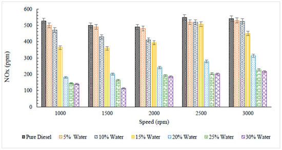 - The W/D emulsion fuel combustion produced much less NOx than pure diesel. The decrease ranged from 3.22% to 67.14%, depending on the proportion of water added. This is due to the heat sink phenomenon, which lowers the adiabatic flame temperature.