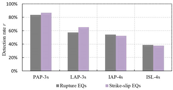 However, from Table 3 and Figure 3, the detection rates of strike-slip EQs are higher than that of rupture EQs determined by datasets PAP-3s, LAP-3s and ISL-4s. These results tend to indicate that the strike-slip EQs are detected more easily than rupture ones but this conclusion has not been testified by the IAP-4s dataset, which is of a contrary result that the detection rate determined by strike-slip EQs is a little lower than that of rupture ones.