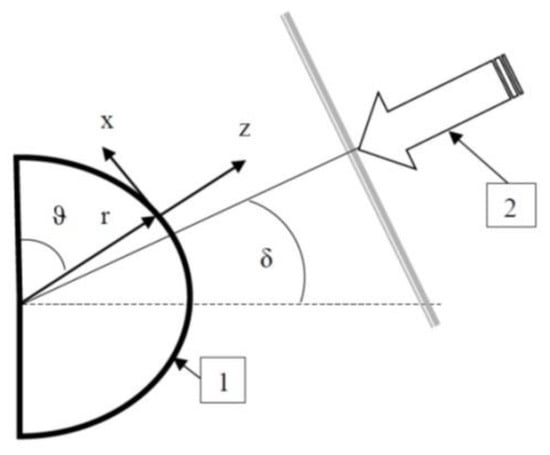 Figure 1, and introduce a spherical coordinate system (