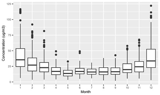 The PM concentrations used in our study for each month. The concentrations for days where sounding data were missing were removed.