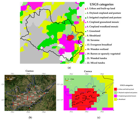 In the future, other options need to be explored, such as using an updated version of WRF-Chem, as well as determining the corresponding versions of the land surface and urban canopy model options. In addition, although the land uses a map of this assessment that acceptably described the current situation in Cuenca, it can be updated. For this purpose, it is necessary to update the data in the USGS or to assess the data coming from the Moderate Resolution Imaging Spectroradiometer (MODIS), or even from dedicated local studies in Cuenca to describe in the best way the land uses categories and their properties.