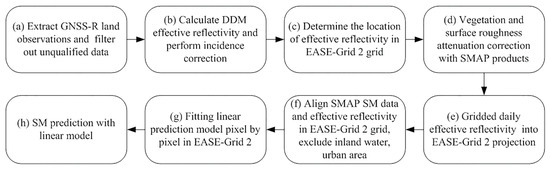 Spaceborne GNSS-R SSM retrieval algorithm flow chart.