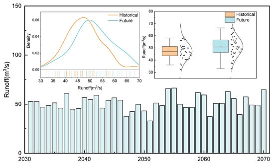 Comparison of the projected runoff from 2031 to 2070 and the historical runoff from 1961 to 2000.