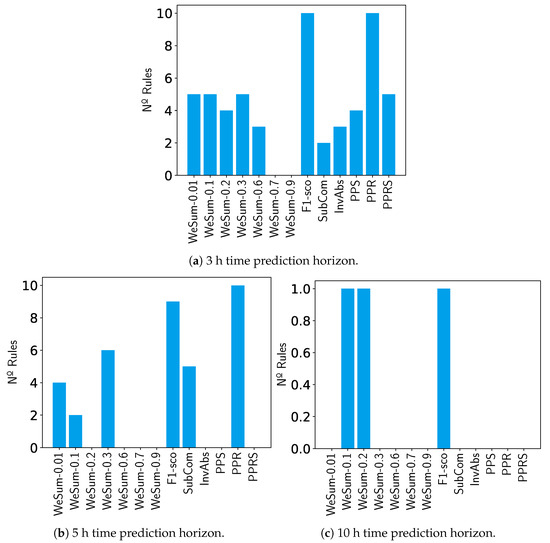 Test results for induced/evolved rules used as an additional predictive feature, considering a time prediction horizon of +10 h.