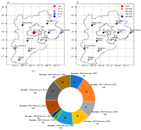 - The spatial and temporal variability in winter FRB of BTH region is also obvious, and its spatial distribution is similar to that of the annual total FRB. The highest and lowest winter FRB are located in Beijing and Chengde respectively, with 32 and 1 broken rails respectively. The percentage of winter FRB in all regions exceeds 60% of the total annual FRB, and some regions, such as Baoding and Chengde, have 100% of the total FRB in winter. There is also a very obvious interannual variation in the winter FRB.