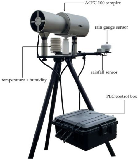 The ACFC can be divided into three units: the sampler, the sensor module, and the programmable logic controller (PLC) control box (Figure 1). The sensor module is integrated into a 600 mm horizontal bar, which can identify fog events and avoid mistaking rain for fog.