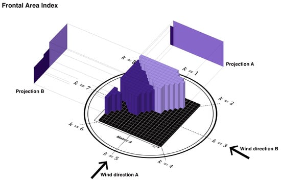 where denotes the maximum value of the i-th column of matrix The matrix operation is described in other papers by , see [18]. - Frontal area index: the frontal area index (FAI) in direction can be written as a 3D matrix, where the coordinates indicate the spatial location and the k coordinate indicates the spatial direction: