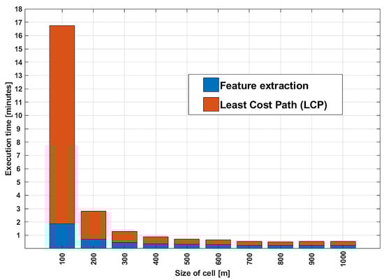 We consider the cell size of . First, in Figure 8, we present the number of LCP pairs that need to be calculated for each cell size. This is important as it has a direct impact on the run-time of the algorithm, as we have shown in the computational complexity analysis earlier. Next, in Figure 9, we present the execution time as a function of cell size, where the algorithm was executed on an Intel(R) Core(TM) i7-8565U CPU@ GHz with 4 cores.