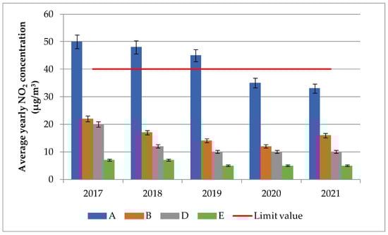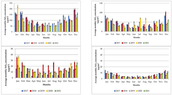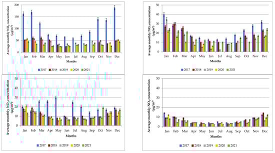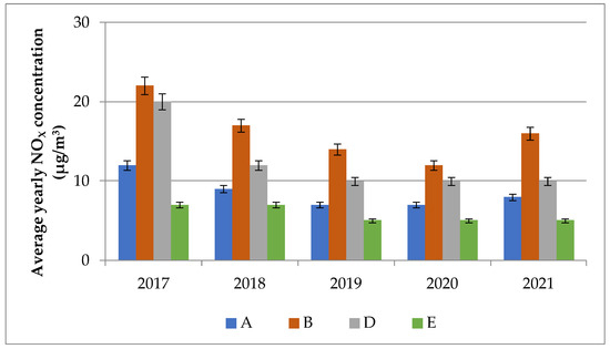 3.2. NO2 and NOX Concentrations between 2017 and 2021