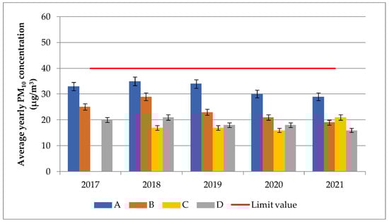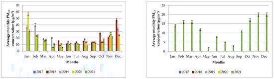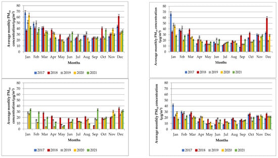 3.3. PM10 and PM2.5 Concentrations between 2017 and 2021
