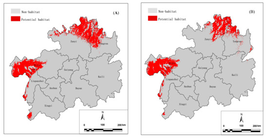 - It would be significant to conduct a comparison between predicted priority conservation areas and current conservation status, although we did not implement this analysis because it is currently difficult for us to obtain distribution data from nature reserves all over Guizhou province. We will conduct this analysis in the future once these data are available.