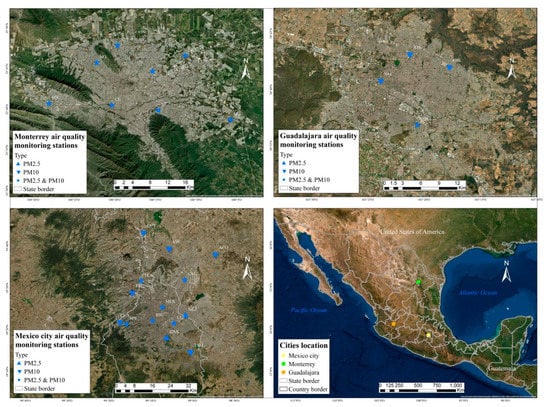 Stations selected for this study in Mexico City, Guadalajara, and Monterrey.