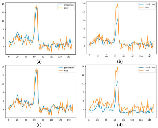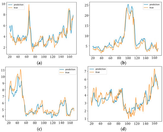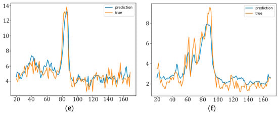 As can be seen from Figure 5, our model not only accurately predicts the peak, but also fits the trend of PM2.5 concentrations more accurately. Due to the violent fluctuations in the true values, there is some error between the predicted and true values from our model, but this is generally within tolerable limits.