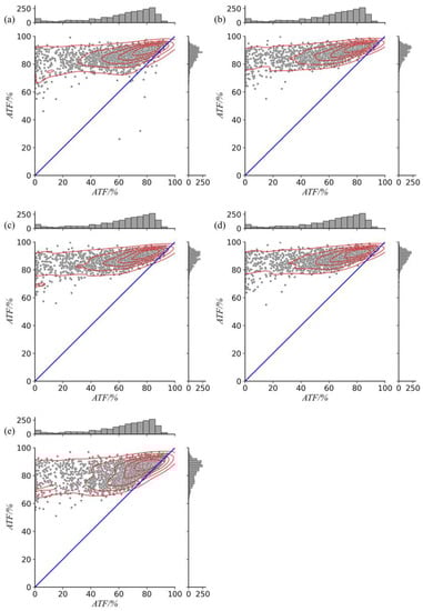 Following previous studies [,], m is set to 2 °C in this study, and the higher the ATF value is, the more accurate temperature forecast will be.