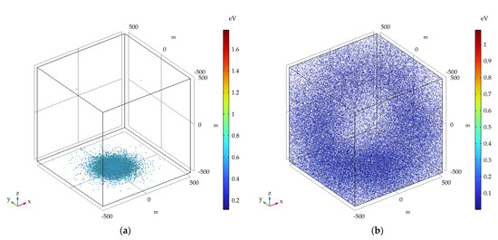- The gas molecules of the jet were N2 and were set at the nozzle outlet with the calculated velocity of the three-dimensional cone distribution during jetting; the jet duration was set to 1 s, and the number of jets was set to 50 to simulate the continuous state;