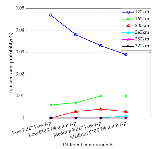 - Since the NRLMSISE-00 model is higher than the actual atmospheric measurement data, the actual transmission probability should be lower than the calculation results of the simulation.